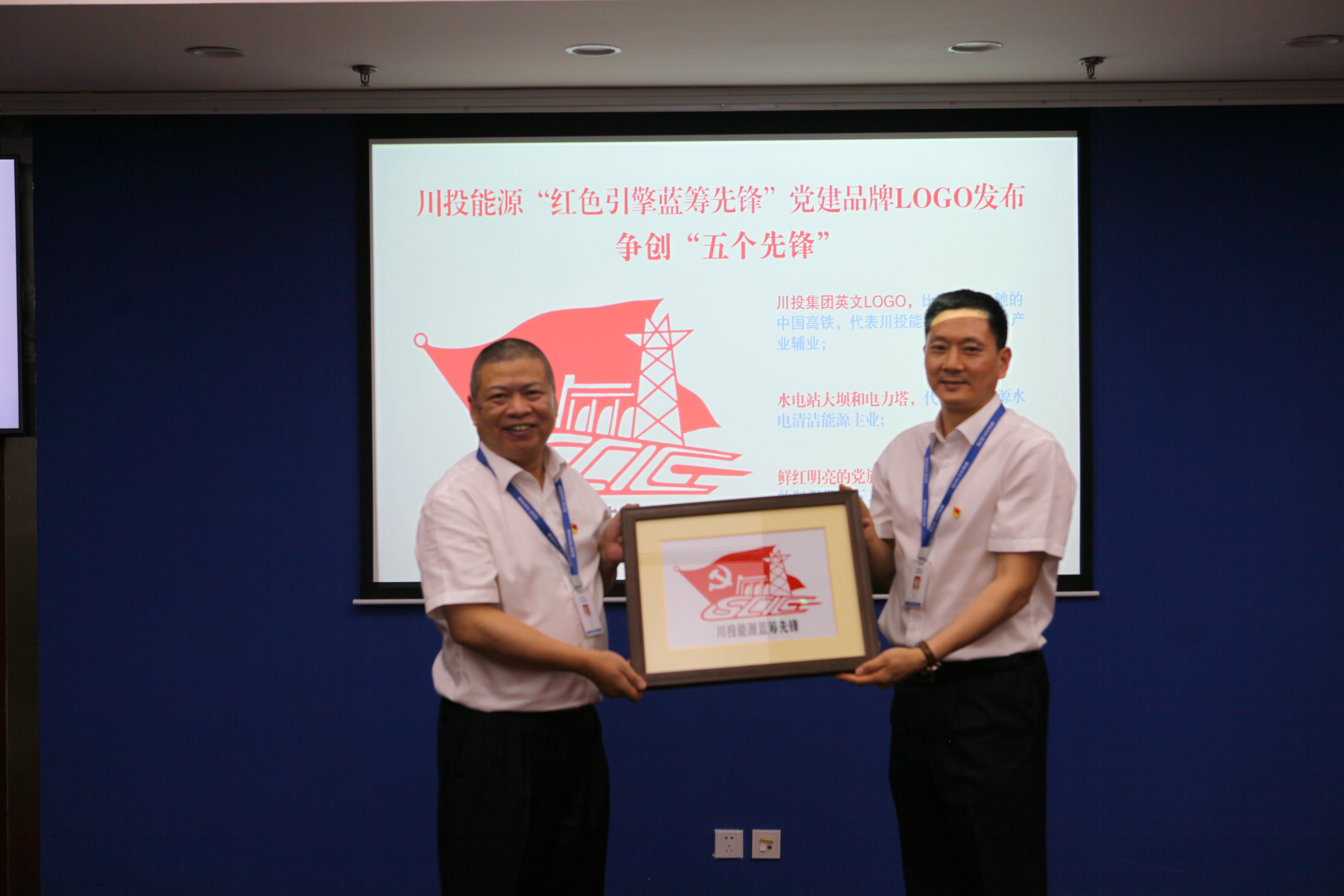 在公司黨建品牌標(biāo)識(shí)發(fā)布會(huì)上,黨委書記楊洪與紀(jì)委書記冉蘭平共同為黨建品牌標(biāo)識(shí)揭牌。在黨建品牌的帶動(dòng)引領(lǐng)下,公司的黨建品牌建設(shè)已經(jīng)形成了“一條主線串,各自放異彩”的良好局面。由川投能源所屬天彭電力黨員莊叢燦設(shè)計(jì)創(chuàng)作的黨建品牌標(biāo)識(shí),要素兼顧、設(shè)計(jì)新穎、要義突出,用川投集團(tuán)英文LOGO,比作急速飛馳的中國高鐵,代表川投能源的高新技術(shù)產(chǎn)業(yè)輔業(yè);水電站大壩和電力塔,代表川投能源水電清潔能源主業(yè);鮮紅明亮的黨旗,喻作風(fēng)帆,寓意在黨的堅(jiān)強(qiáng)帶領(lǐng)下,川投能源乘風(fēng)破浪改革前行的美好景象。